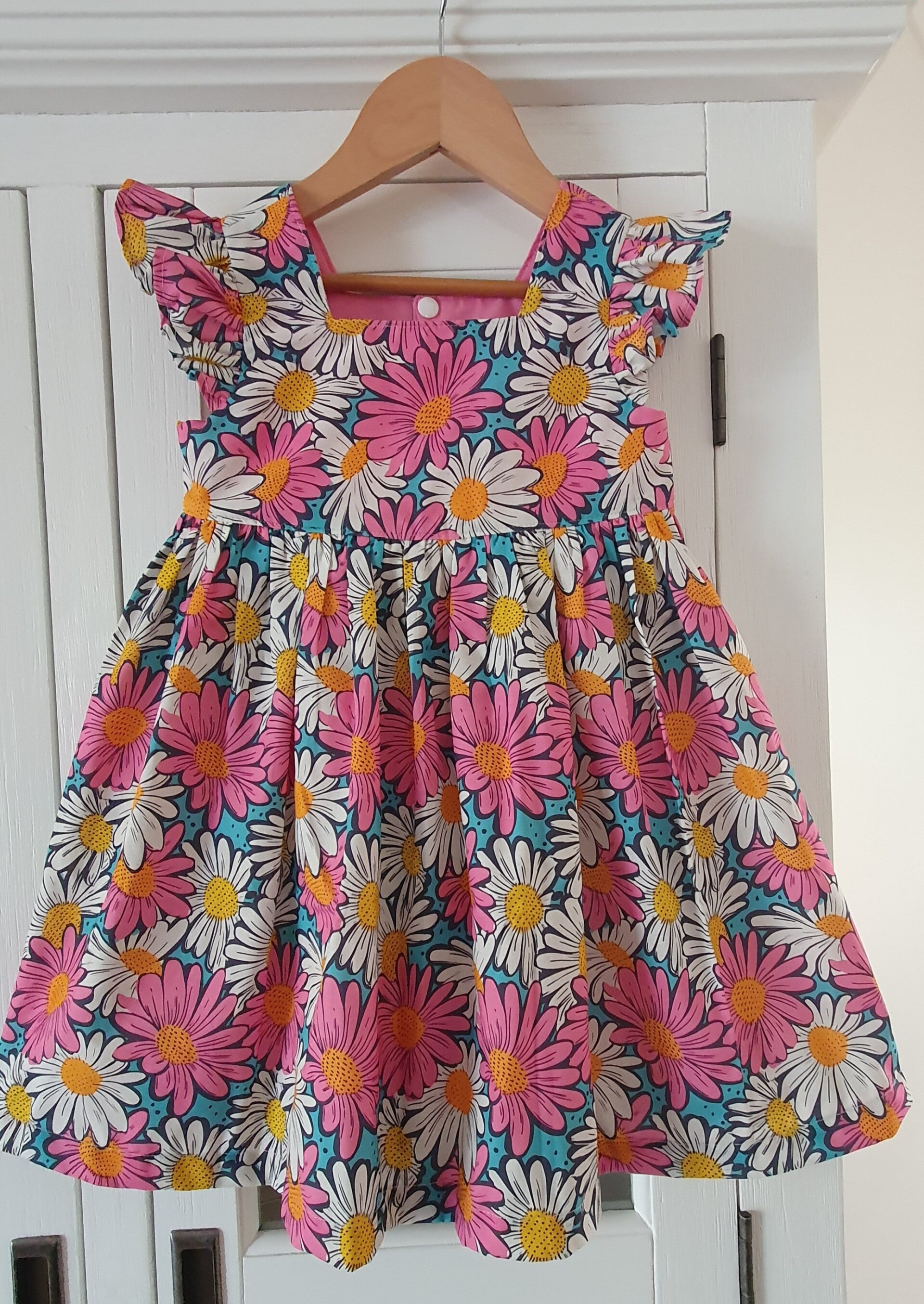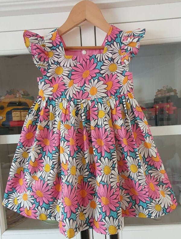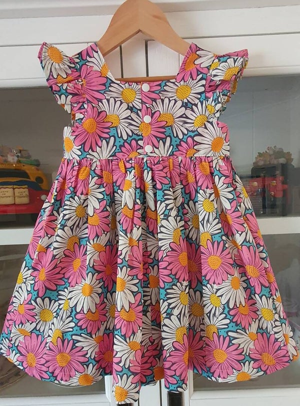 Bring sunshine to your little one’s wardrobe with our Handmade Daisy Dress for Girls, featuring a playful pink and white daisy print on a soft aqua background. Made from 100% breathable cotton, this dress is designed for comfort, style, and everyday wear – perfect for picnics, birthdays, or twirling in the garden. 🌸✨